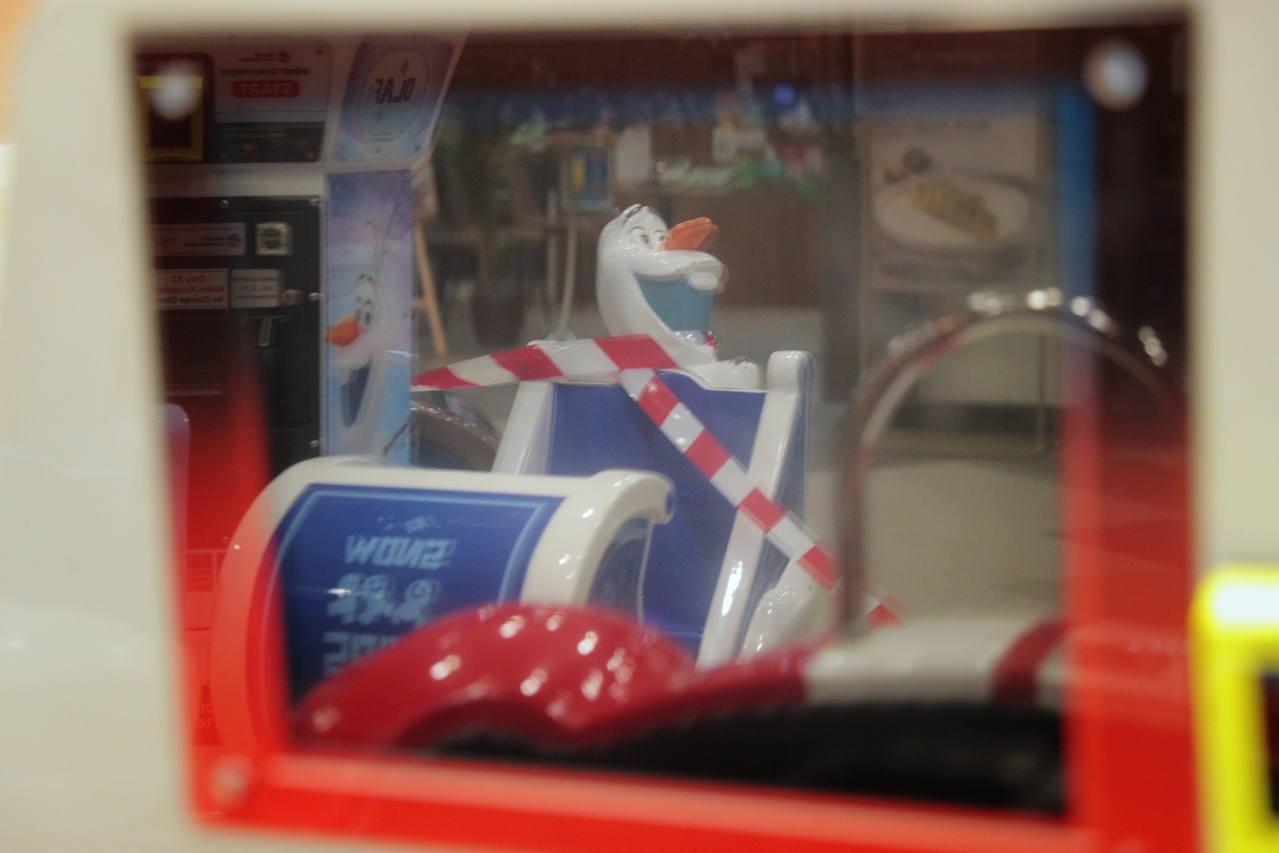 A taped-up coin-operated ride at Great World City mall on May 8, 2020.