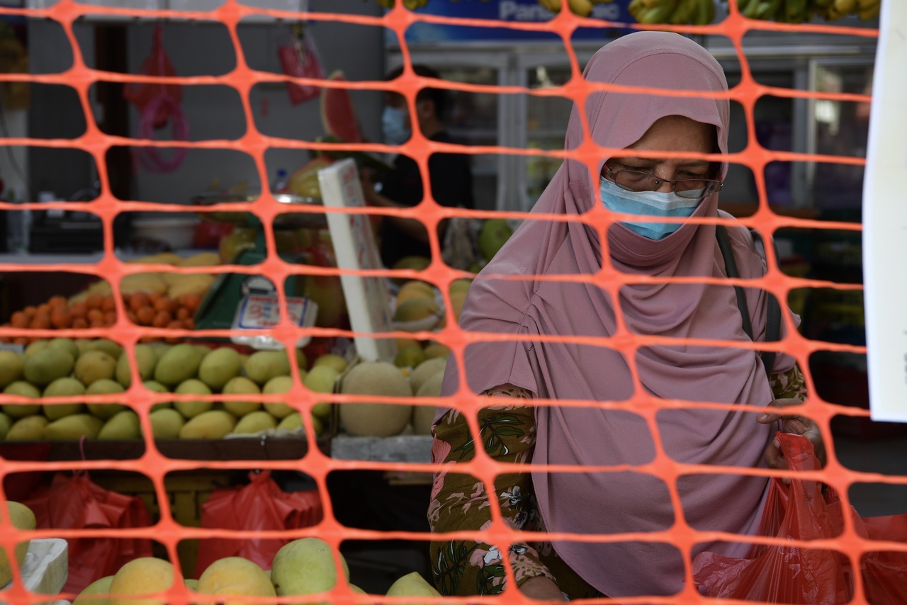 A woman buys fruits at the Geylang Serai market on April 23, 2020.