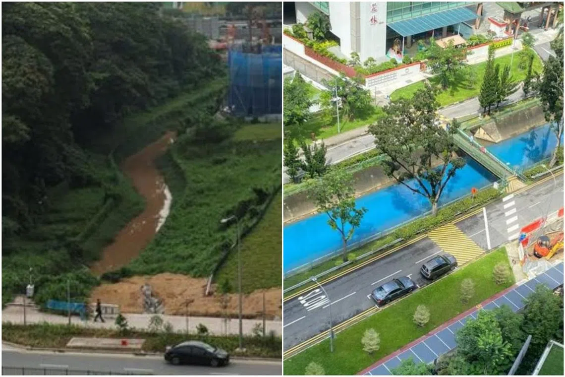 In March, the water in a Tengah canal turned brown, while a canal near Newton turned radiant baby blue in 2024.