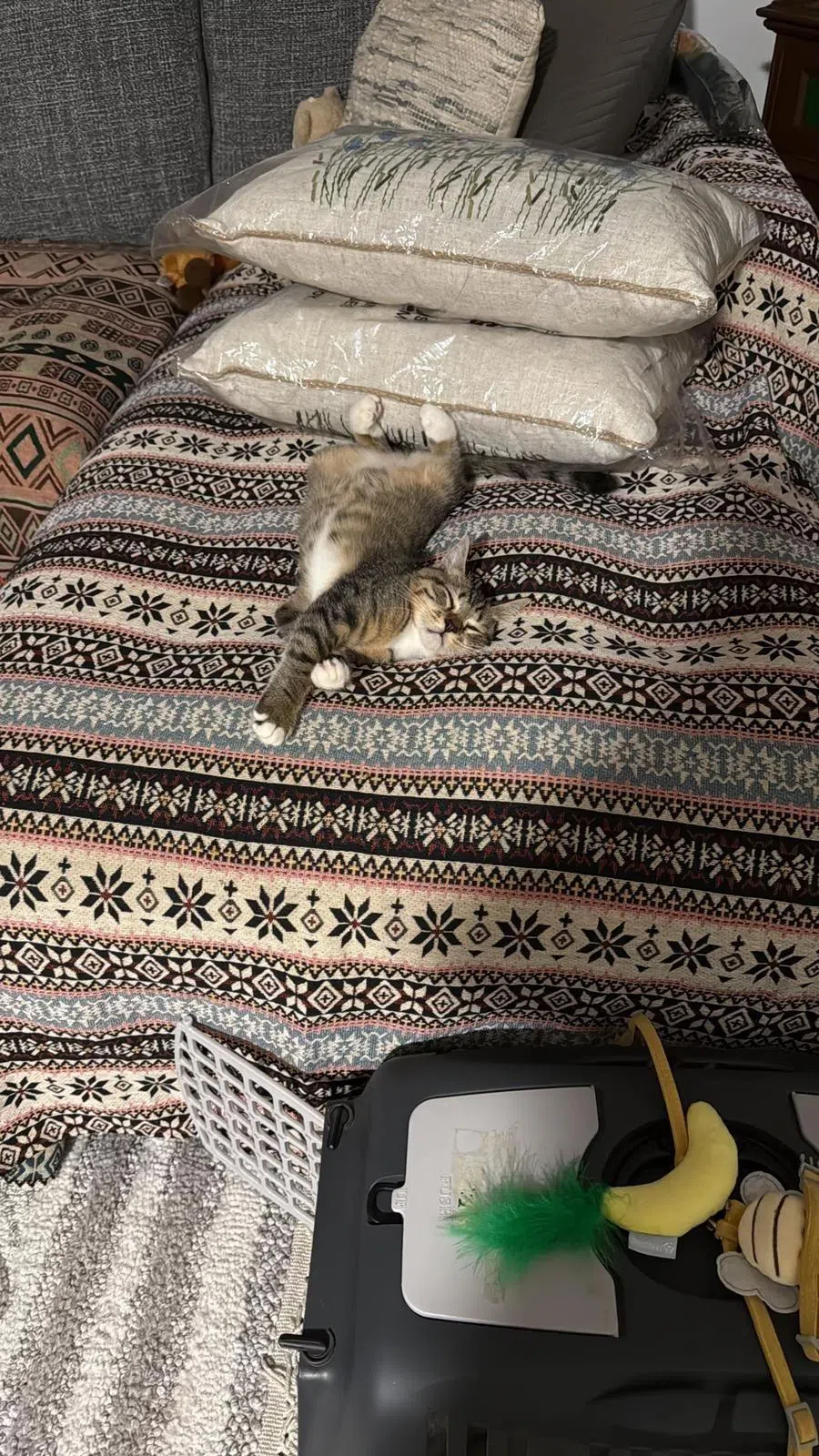 One user, in response to the photo of the kitten on the sofa, said: “Mocha is sleeping like a king.”