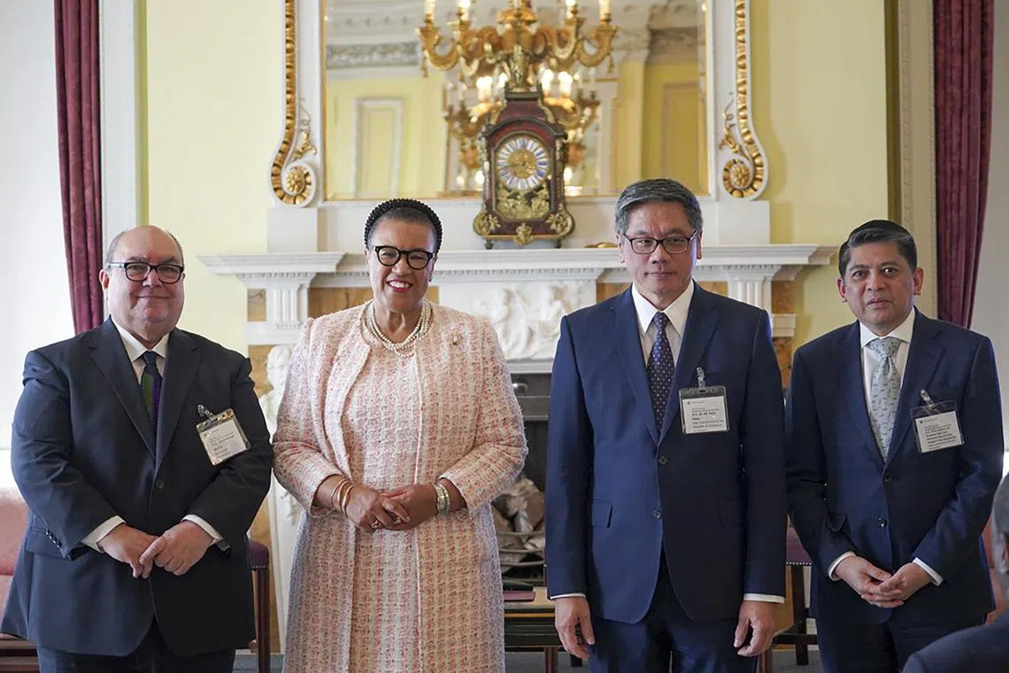 Commonwealth secretary-general Patricia Scotland with Singapore’s High Commissioner to the UK Ng Teck Hean (second from right) at the launch of the Global Youth Development Index Report in London.