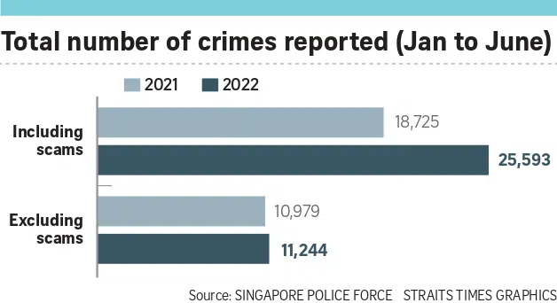 The spike was on the back of an overall increase in scam cases here in the first half of 2022, which also drove up Singapore’s crime rate.
