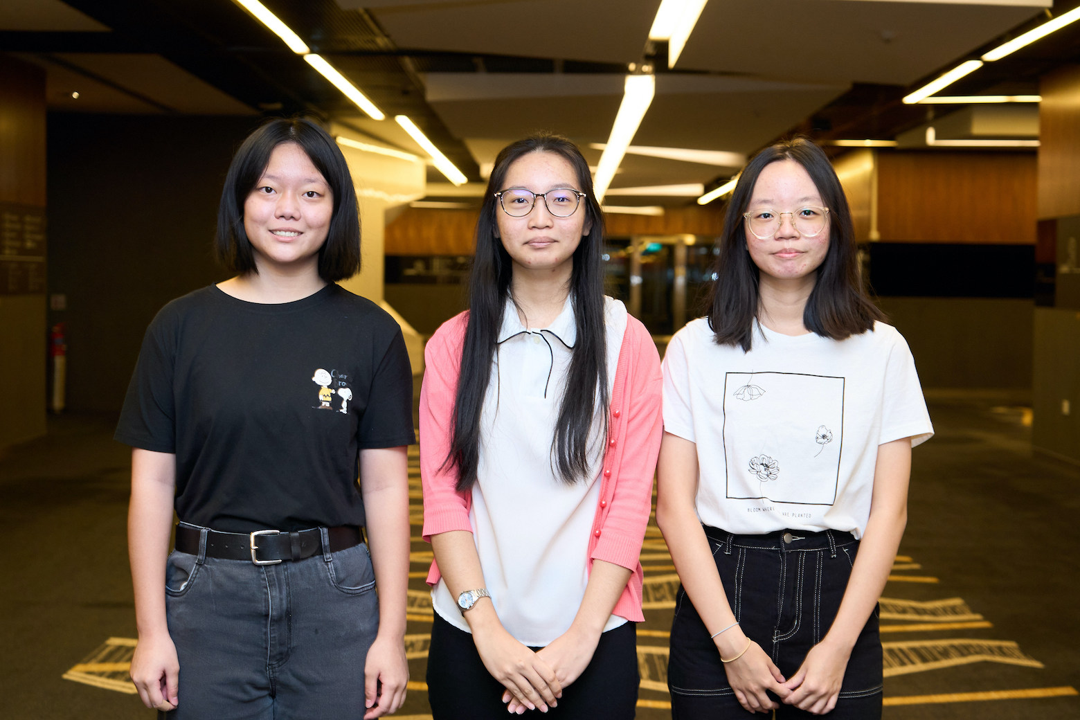From left: Ms Alicia Ho, Ms Olivia Law and Ms Chyanne Teo from team BUBBLON.