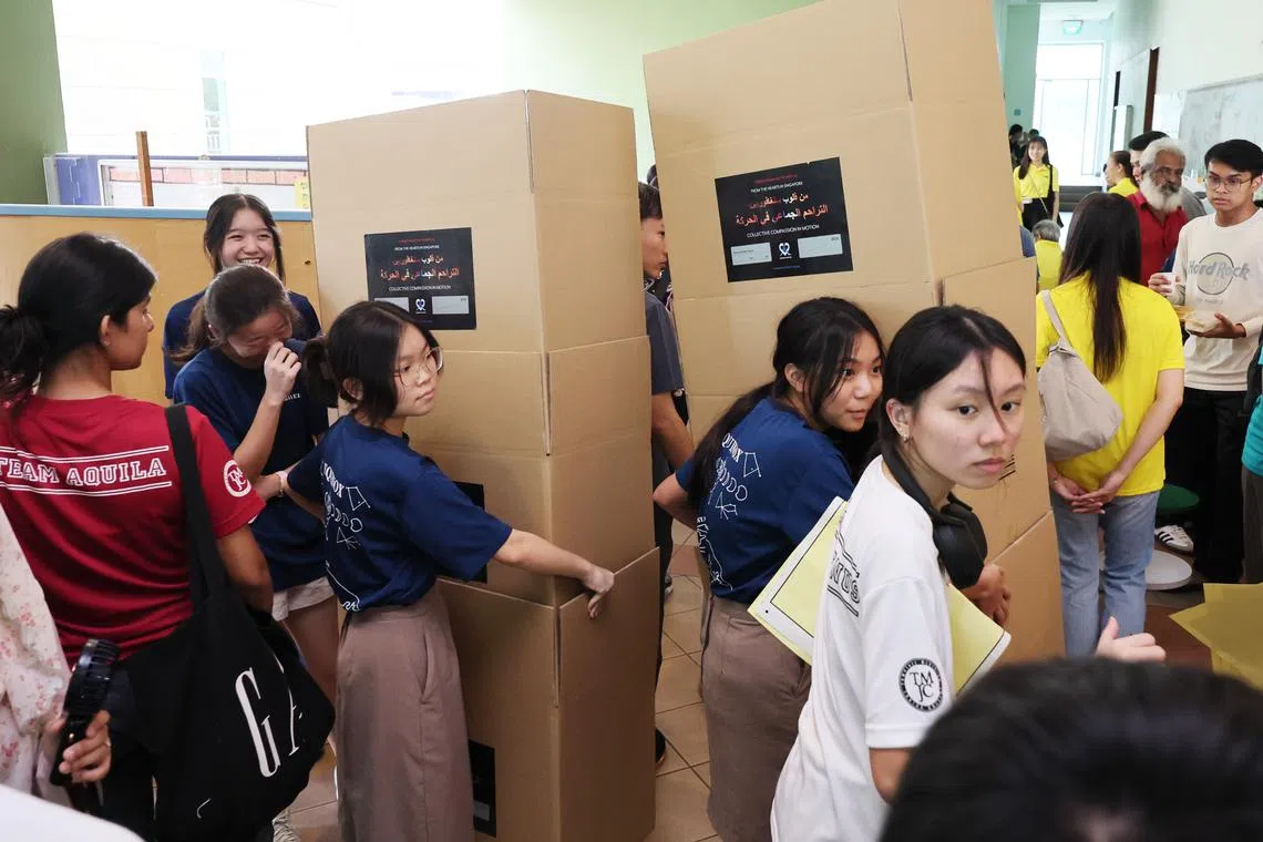 SINGAPORE - At least 300 youngsters gathered in Tampines on March 9 to help non-profit organisation Humanity Matters prepare aid packages meant for humanitarian relief efforts in Gaza.