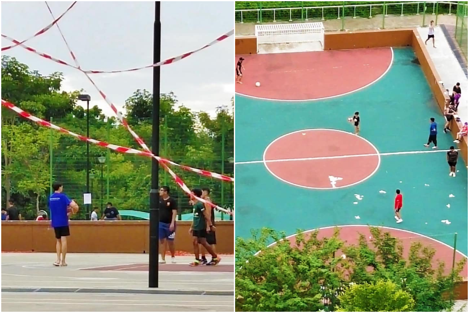 SINGAPORE - Several groups of young people were seen playing basketball and football at outdoor courts in Tampines while allegedly breaching the five-person limit on social gatherings last week.