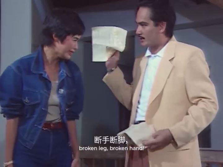 SINGAPORE - Dressed in double denim, a young Zoe Tay takes a slip of paper from Zhu Houren, before throwing it back in his face in a clip from 1990s hit drama The Unbeatables.