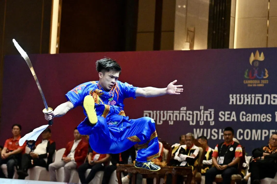 Jowen Lim won the gold medal for the men’s daoshu and gunshu combined event at the Cambodia SEA Games in May.