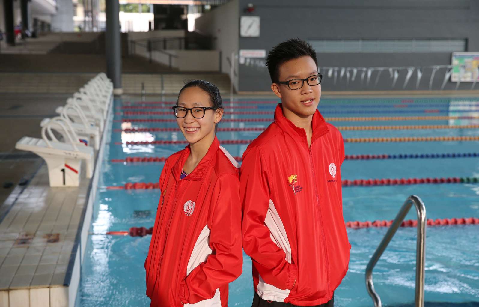 Singapore's Cherlyn Yeoh, gold medalist in the girls' 50m freestyle, and Mikkel Lee, gold medalist in the boys' 50m backstroke and 50m freestyle.