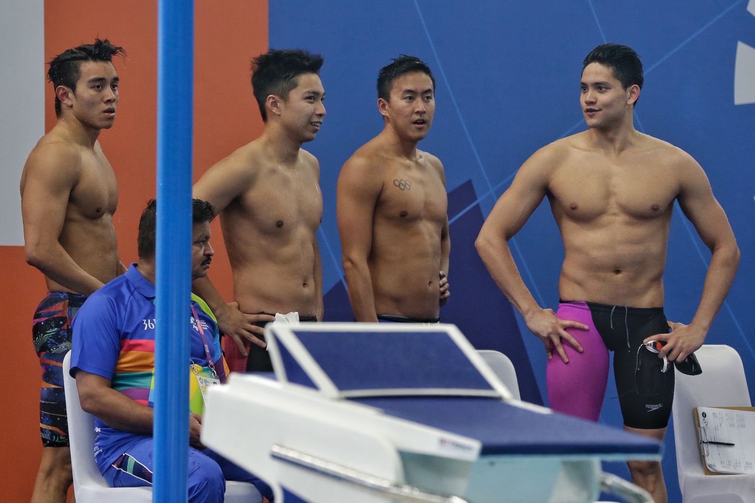 (From left) Singapore’s quartet of Darren Lim, Lionel Khoo, Quah Zheng Wen and Joseph Schooling finished fourth overall in the heats on the last day of the Asiad swimming competition.