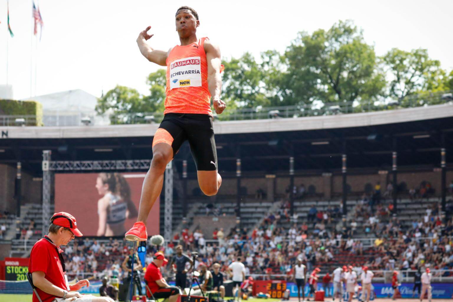 Even though his delight was tempered by the ruling that the wind of 2.1 metres per second was just over the legal limit, Echevarria was still delighted with the mark which bodes well for the rest of the season.