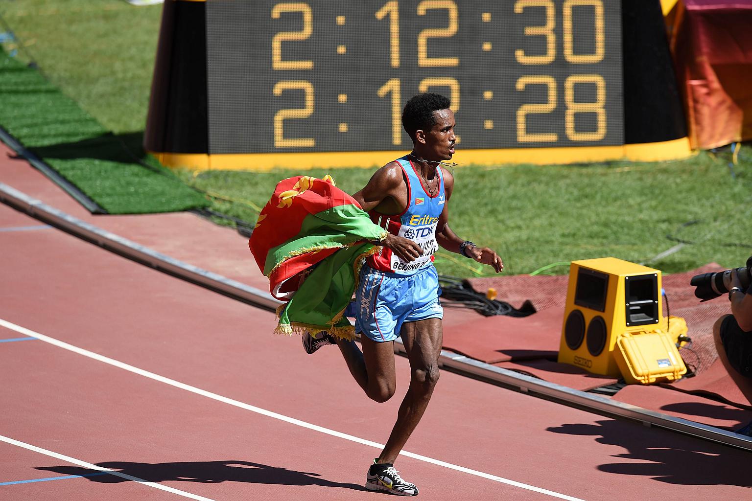 BEIJING (AFP) - Eritrea claimed the first gold of the world championships when unheralded teenager Ghirmay Ghebreslassie produced a shock victory in the men's marathon on Saturday.