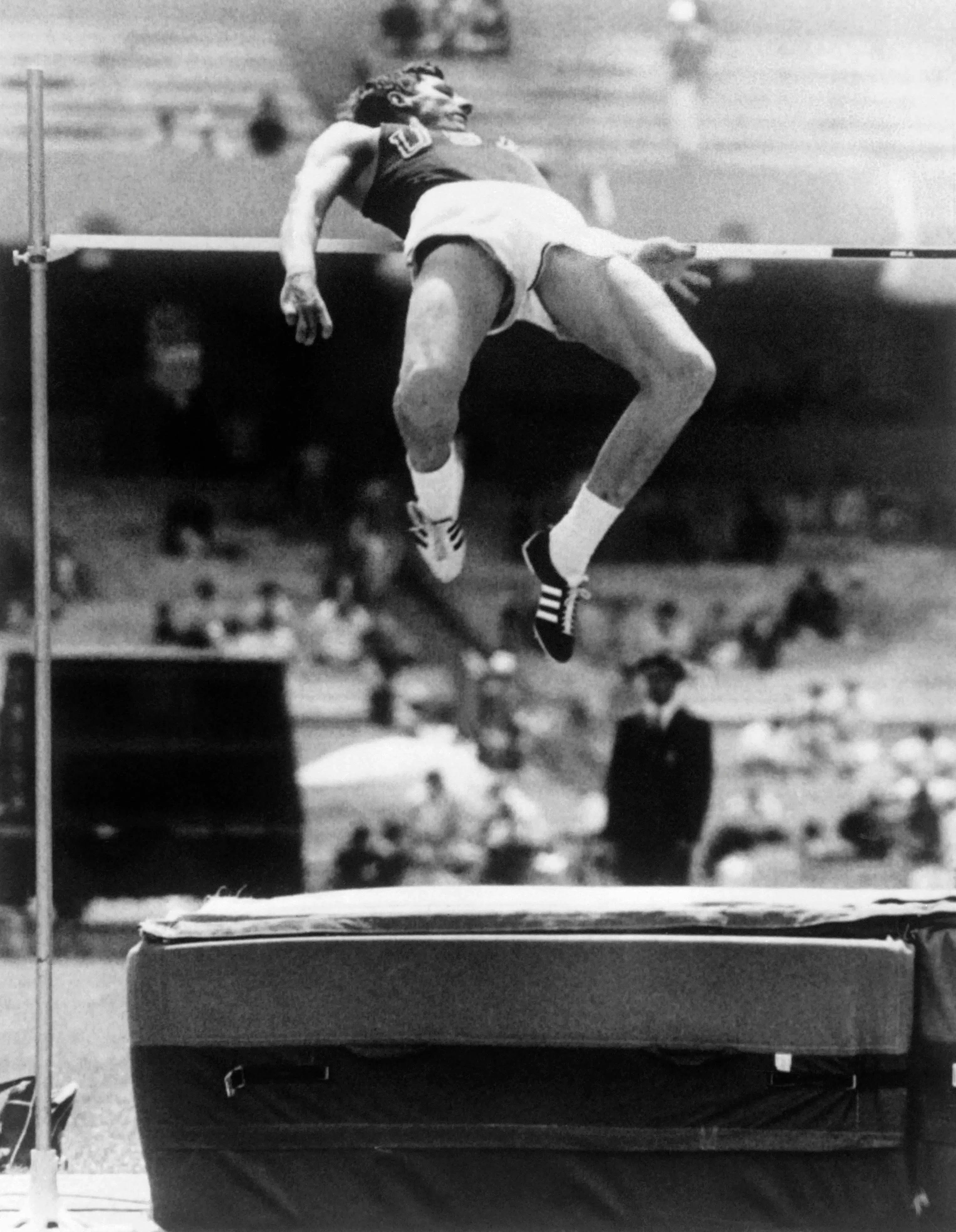 In this photo from Oct 20, 1968, US' Dick Fosbury competes in the men's high jump final and wins the gold medal with a brand new style of jumping at the Mexico Olympic Games.