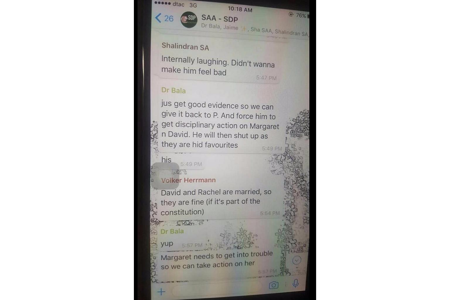 SA staff such as technical director Volker Herrmann, SDP manager Ong Wan Xin and senior executive Shalindran Sathiyanesan were also part of said conversation.