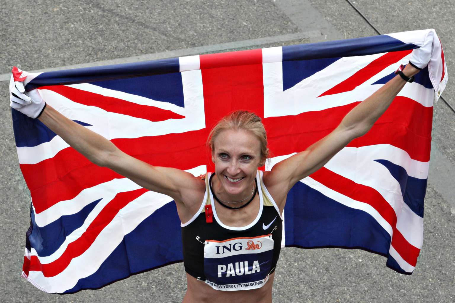Ms Paula Radcliffe of the UK. holds a British flag after winning the women's New York City Marathon in New York, US, on Nov. 4, 2007.