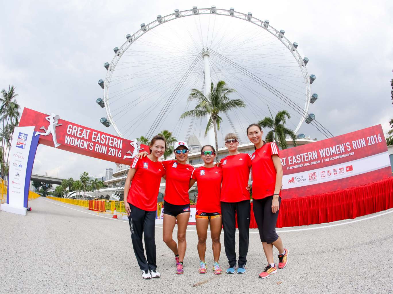 (Left to right) Neo Jie Shi (Singapore), Nary ly (Cambodia), Mary Joy Tabal (Philippines), Iuliia Andreeva (Kyrgyz Republic) and Gulzhanat Zhanatbek (Kazakhstan, Olympians who will be participating in the 21.1km half marathon for Great Eastern Women's Run on Nov 13, 2016.