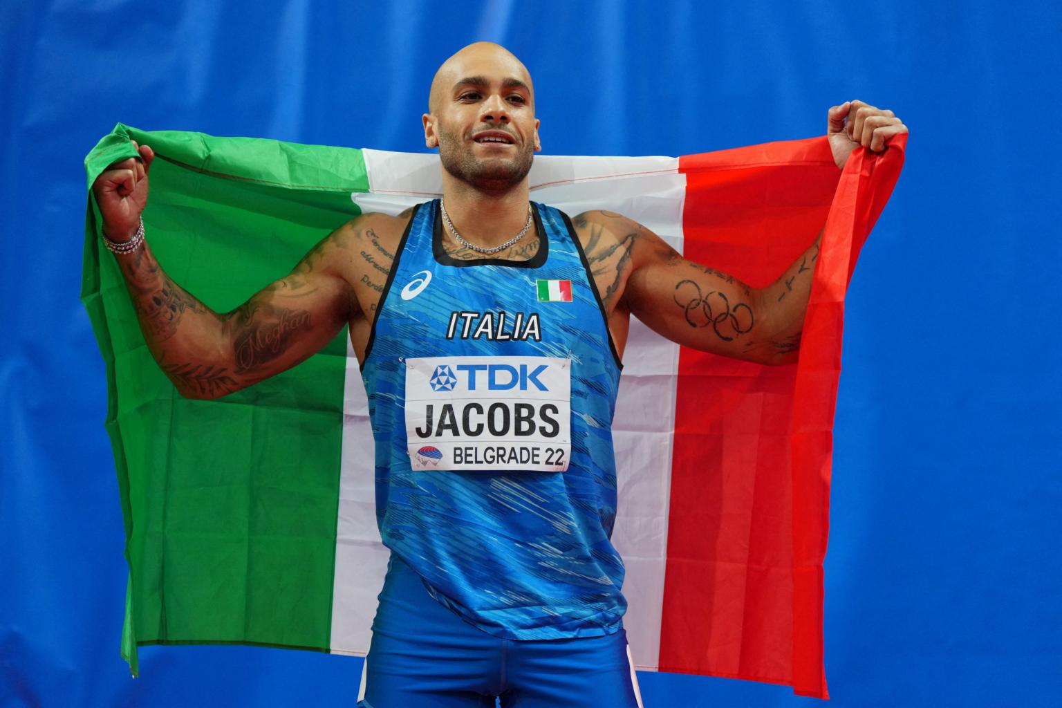 Jacobs became the first Italian to win the Olympic 100m gold in Tokyo last August, setting a European record time of 9.80sec in the final, before adding a second gold to his collection in the 4x100 metres relay.