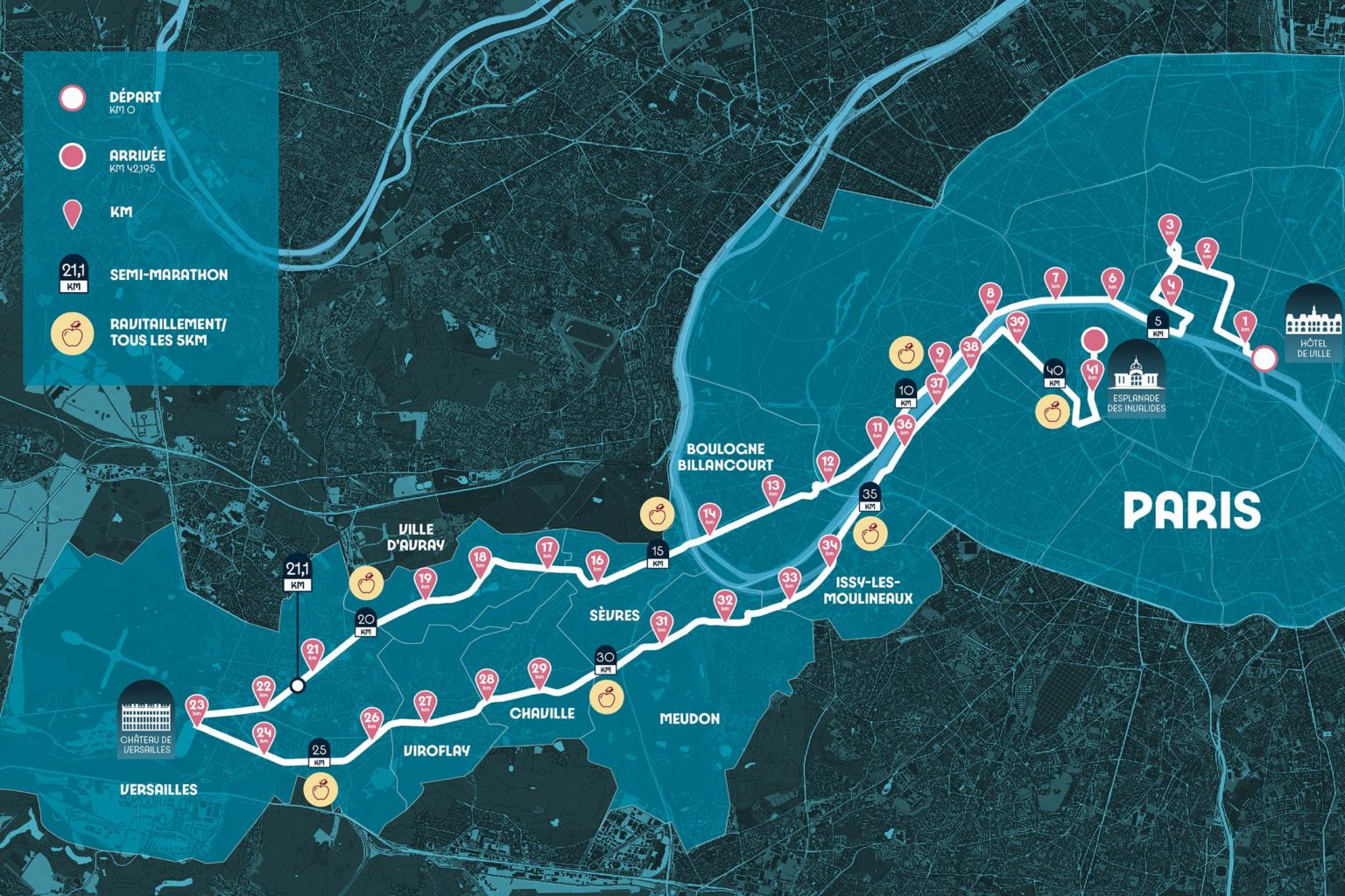 Starting at the Paris City Hall, athletes will run to Chateau de Versailles on the western outskirts of Paris, then return to the city center and finish at the Invalides.