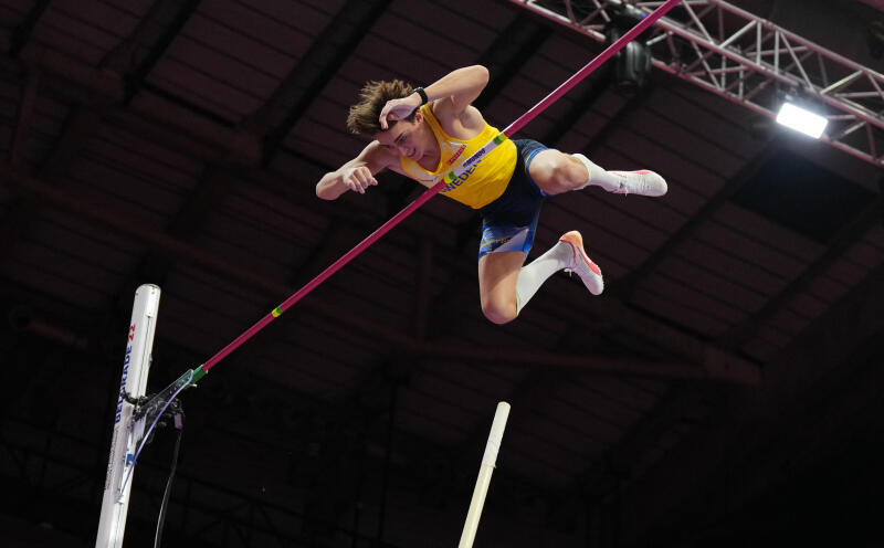 Sweden's Armand Duplantis in action during the men's pole vault final.