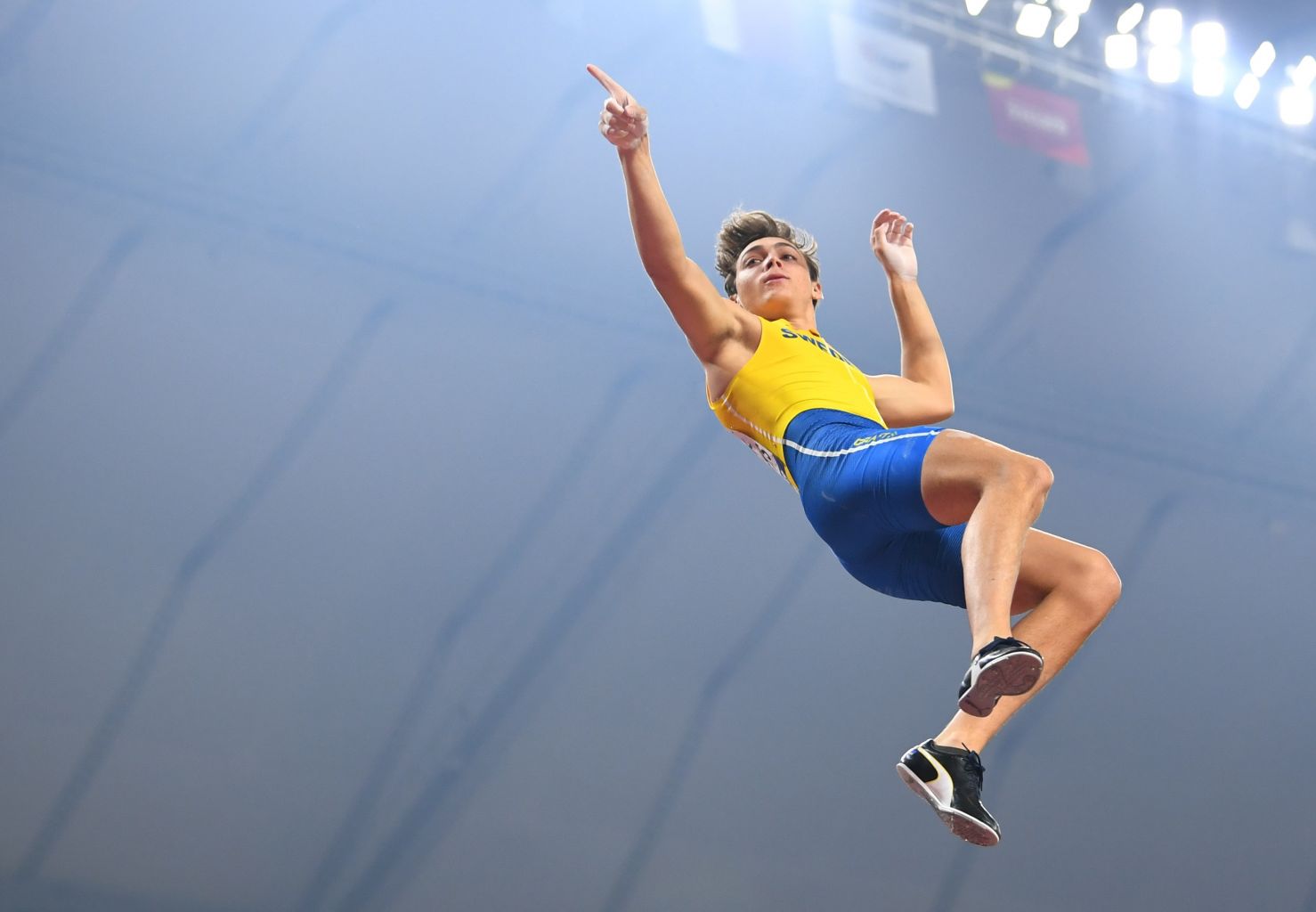 Duplantis is seen in action in Doha, Qatar, Oct 1, 2019.