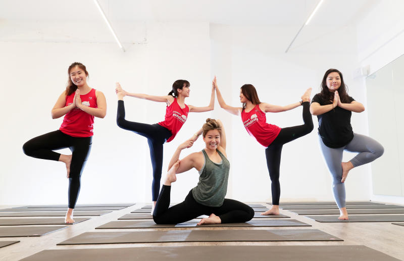 (From left) Nicole Chong, Joy Ng, Elvina Cheong, Joanne Ang, and Dorothy Yip are part of the Freedom Yoga team participating in the OSIM Sundown Marathon Singapore 2019.