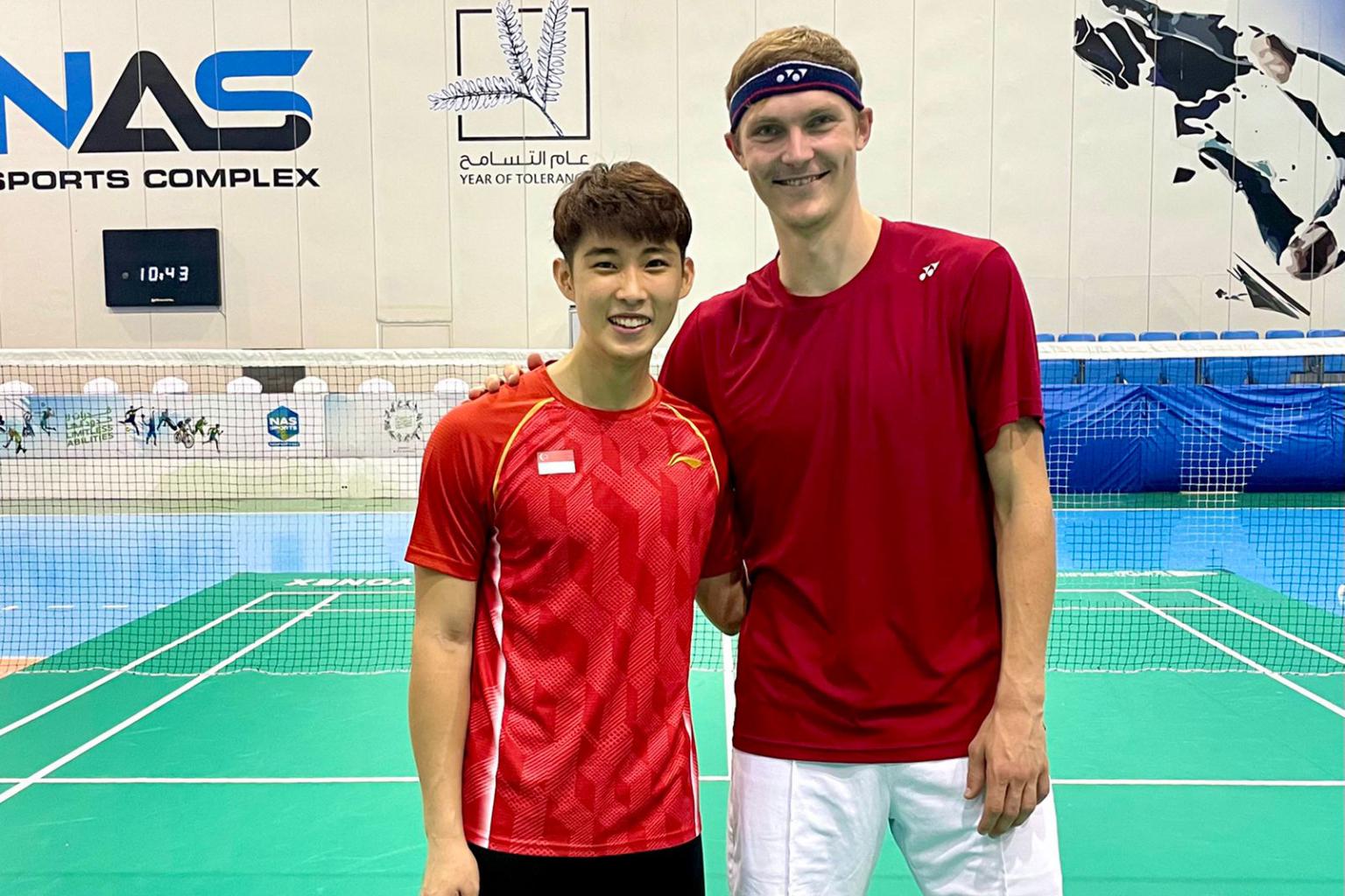 Singapore shuttler Loh Kean Yew (left) with world No. 2 Viktor Axelsen.