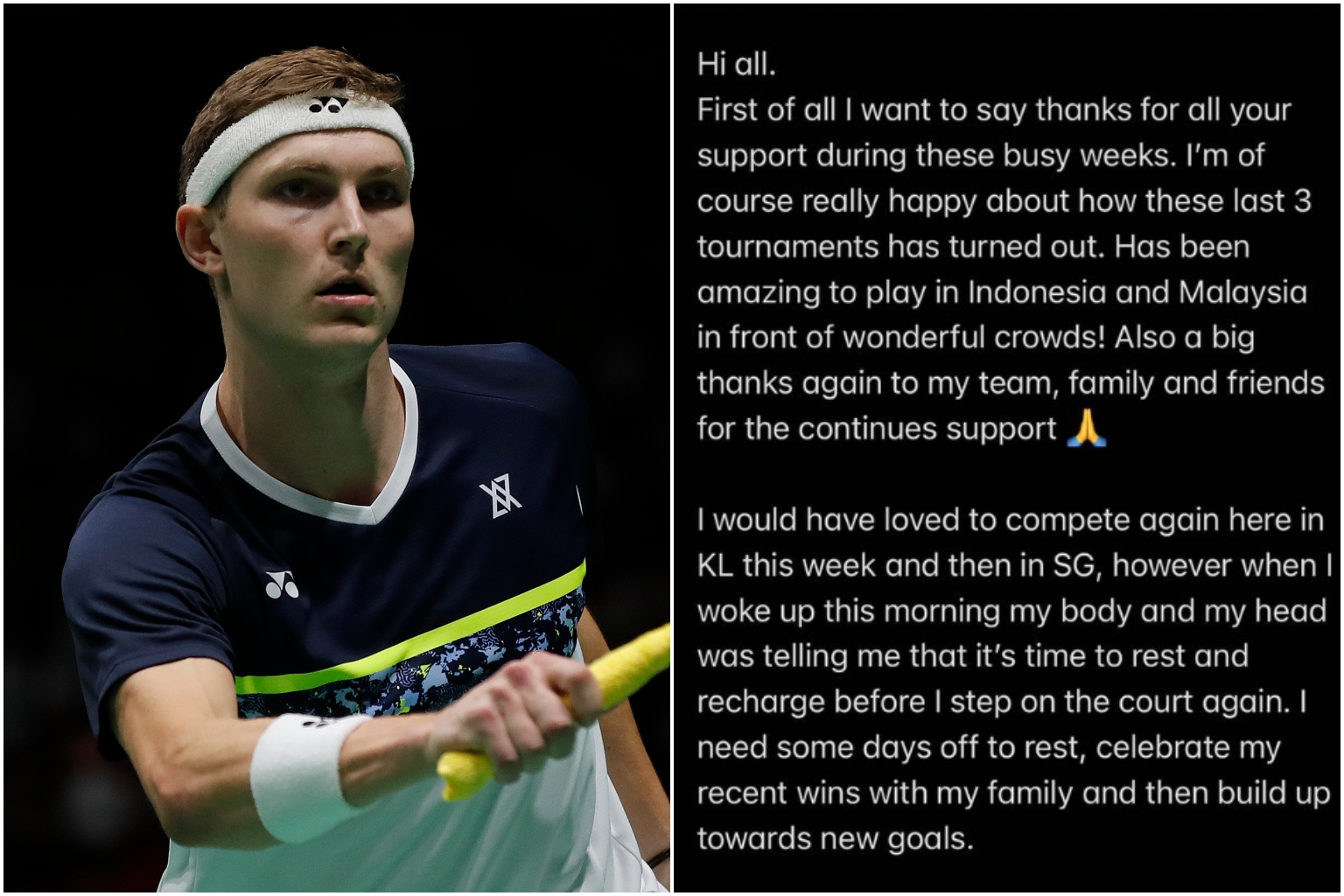 Viktor Axelsen announced his decision on social media a day after winning the Malaysia Open on July 5.