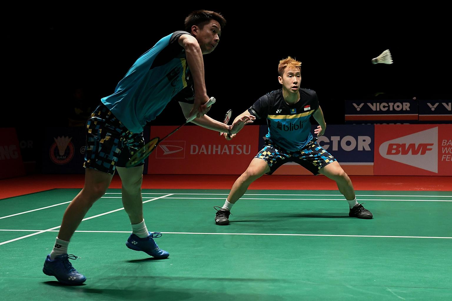 Top-ranked men's doubles pair Kevin Sukamuljo (left) and Marcus Gideon will be part of a 50-strong contingent from Indonesia at the Singapore Badminton Open.