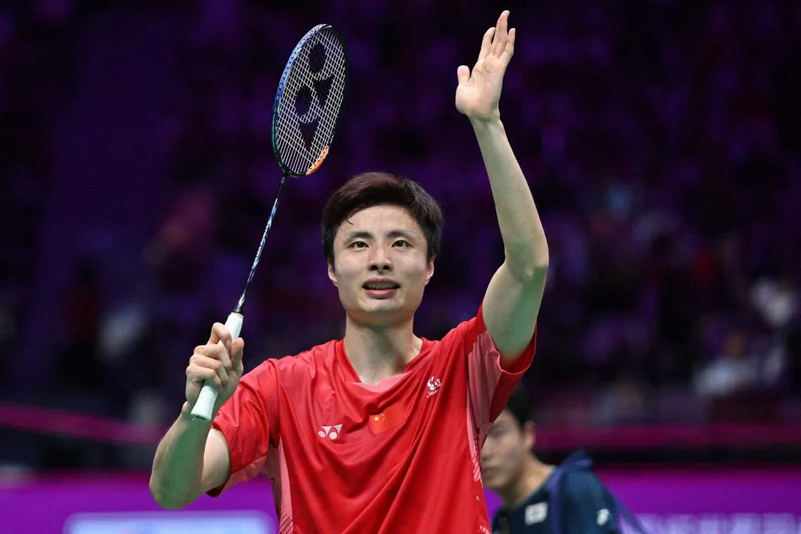 Men’s top seed and defender Shi Yuqi, of China, beat India’s Lakshya Sen 21-11 20-22 21-15.