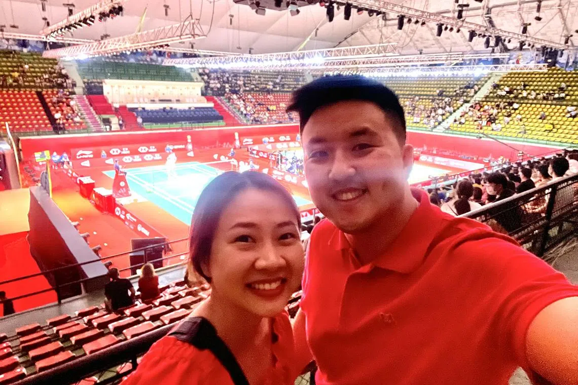 Singaporean Alexstine Aw and his wife Phitraphee Prasithirun took time off their wedding preparations in Bangkok to watch Loh Kean Yew play at the BWF World Tour Finals.