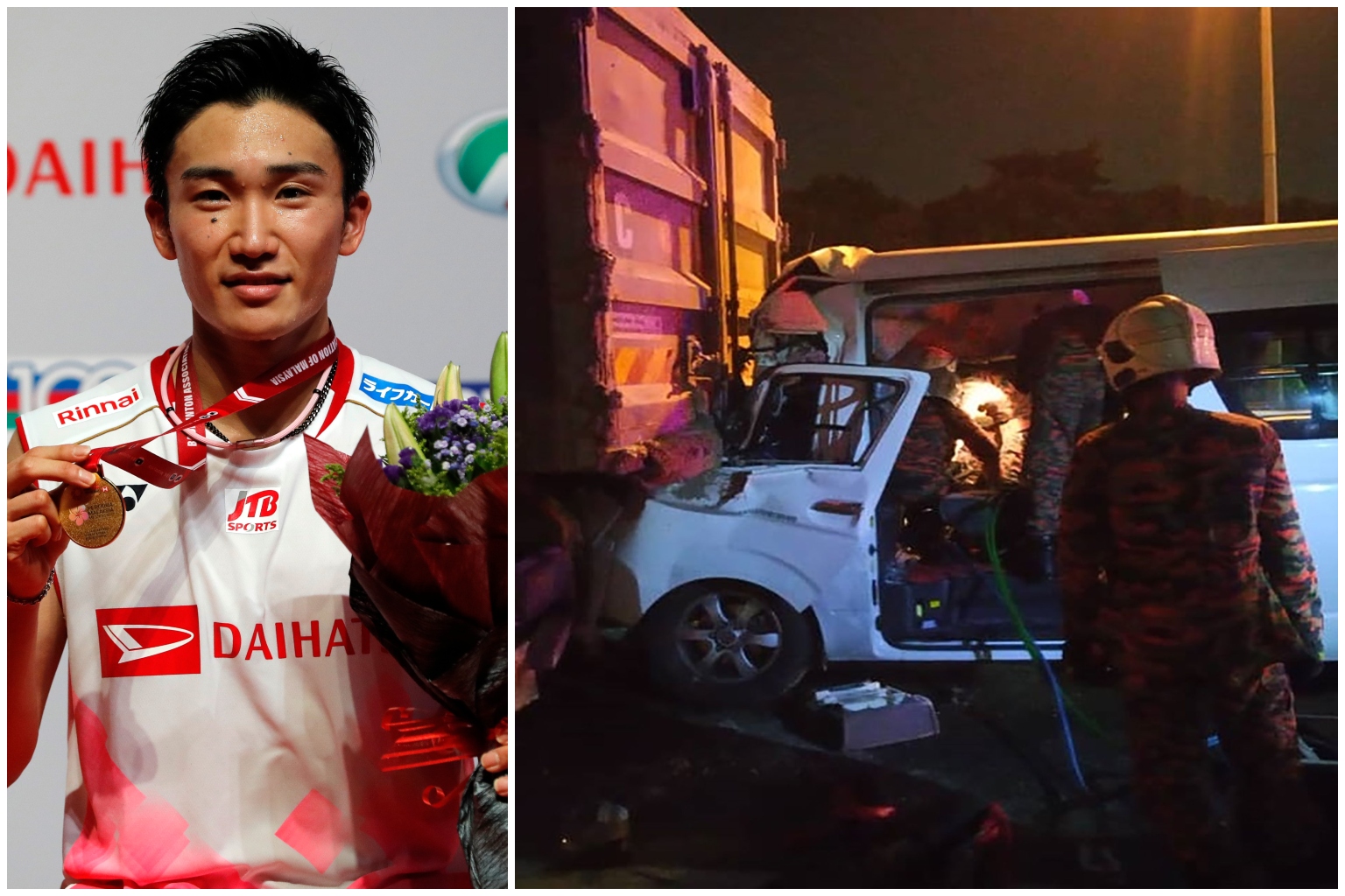 The Japanese shuttler and the three other passengers were en route to Kuala Lumpur International Airport when the hired van they were in rammed into the rear of a 30-tonne truck, the local fire and rescue department said in a brief statement. Pictures showed the front of the van crushed against a lorry but the back section appeared intact.