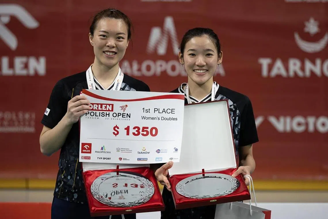 Jin Yujia (left) and Crystal Wong win their second international title together after beating Canada in the Polish Open women’s doubles final.