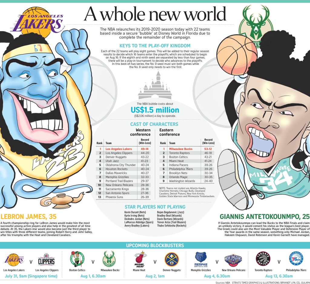 ORLANDO • LeBron James of the Los Angeles Lakers has likened the "bubble" to a youth basketball tournament for grown men who happen to be some of the most recognisable sports stars on the planet.