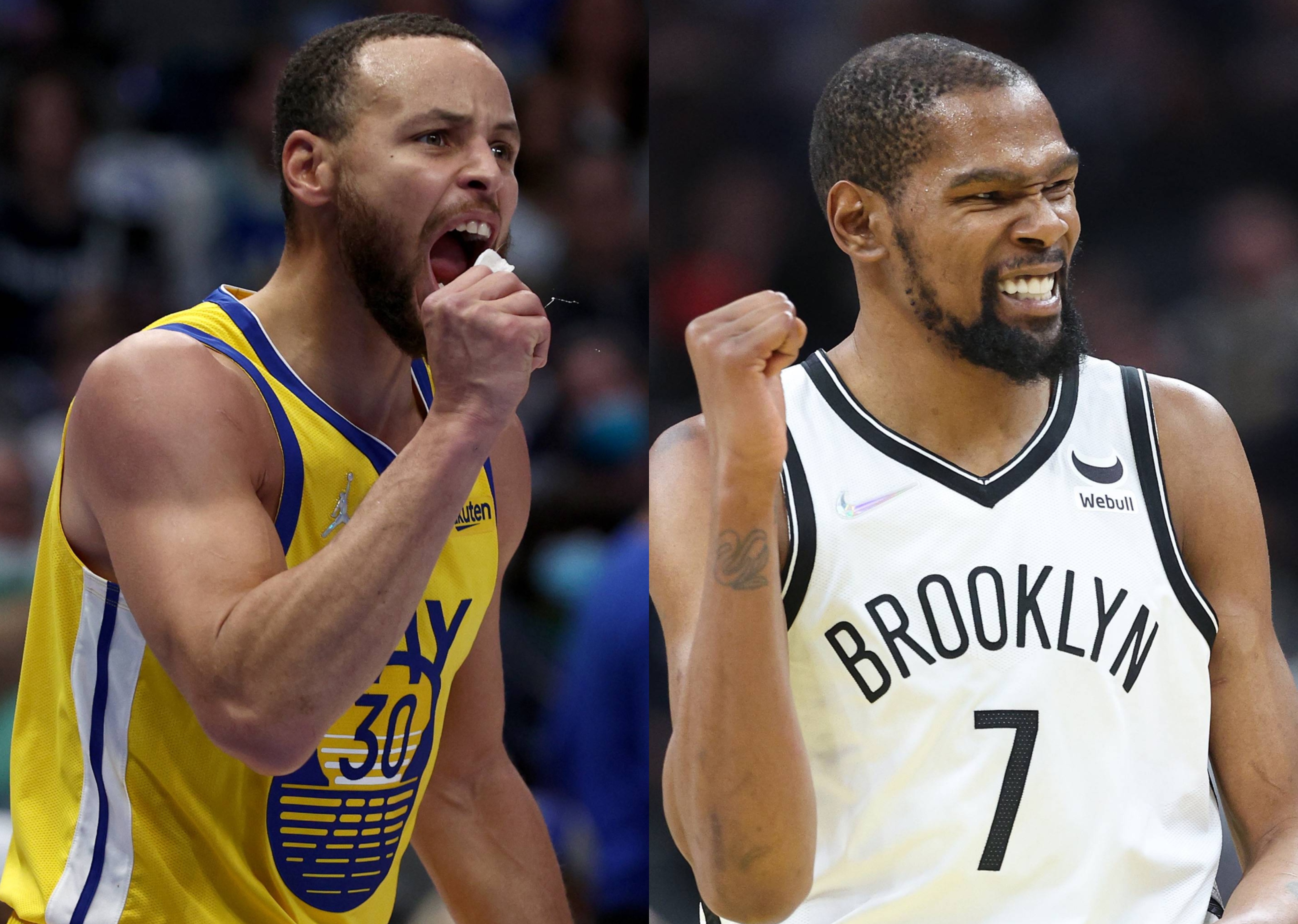 Golden State Warriors guard Stephen Curry (left) and Brooklyn Nets forward Kevin Durant.