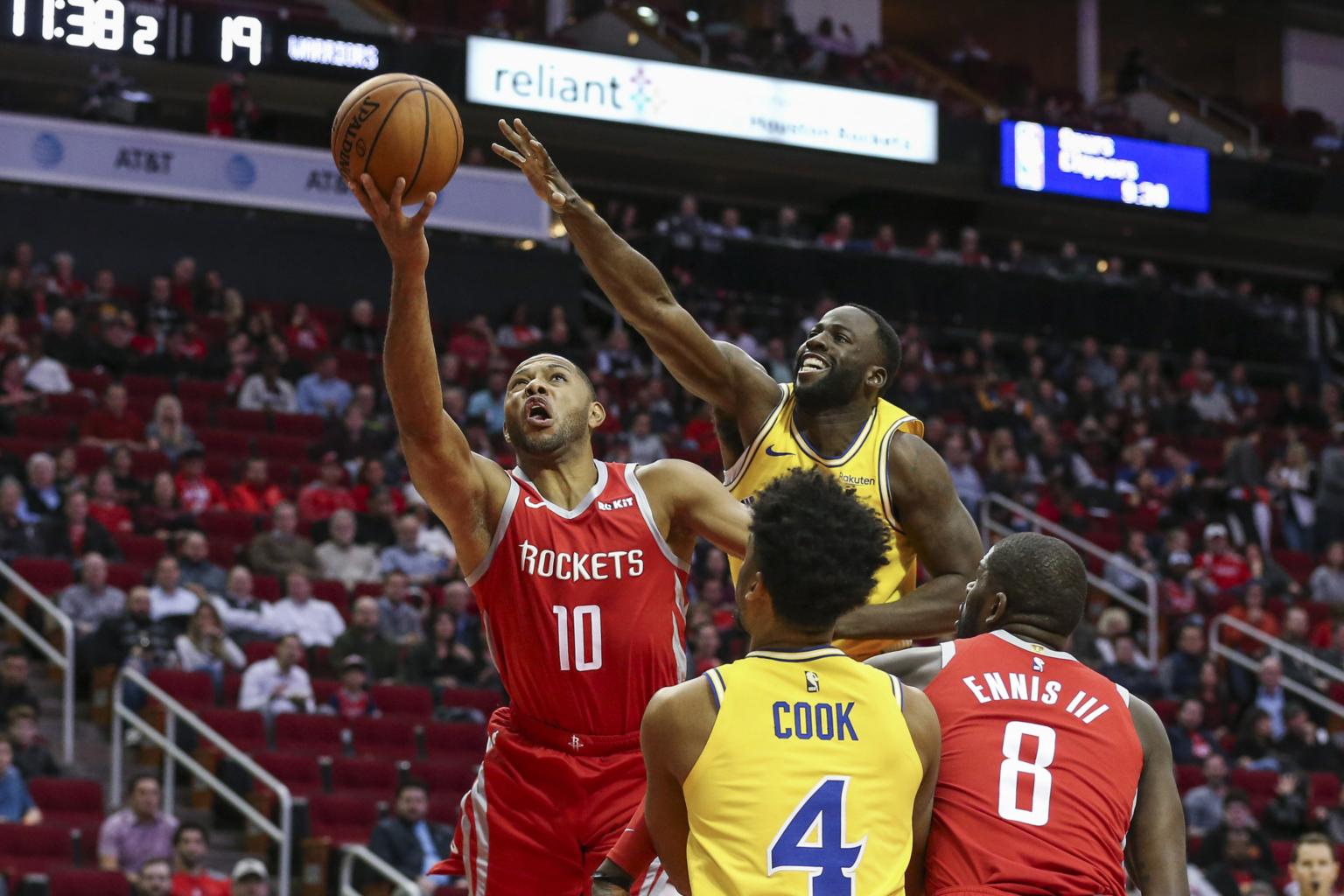 The Rockets took full advantage of the absence of Warriors sharpshooter Stephen Curry, who missed his fourth straight game with a groin injury.