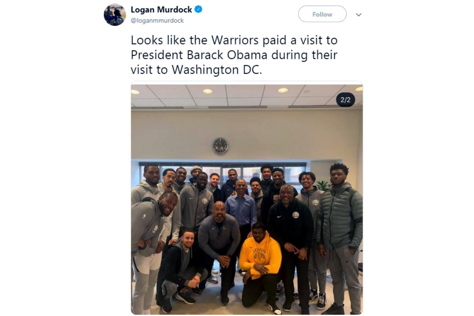 A reporter for the San Jose Mercury News, Logan Murdock, captured a photo of the Golden State Warriors with former US president Barack Obama posted onto Instagram by a security guard before it was deleted. He then tweeted it.