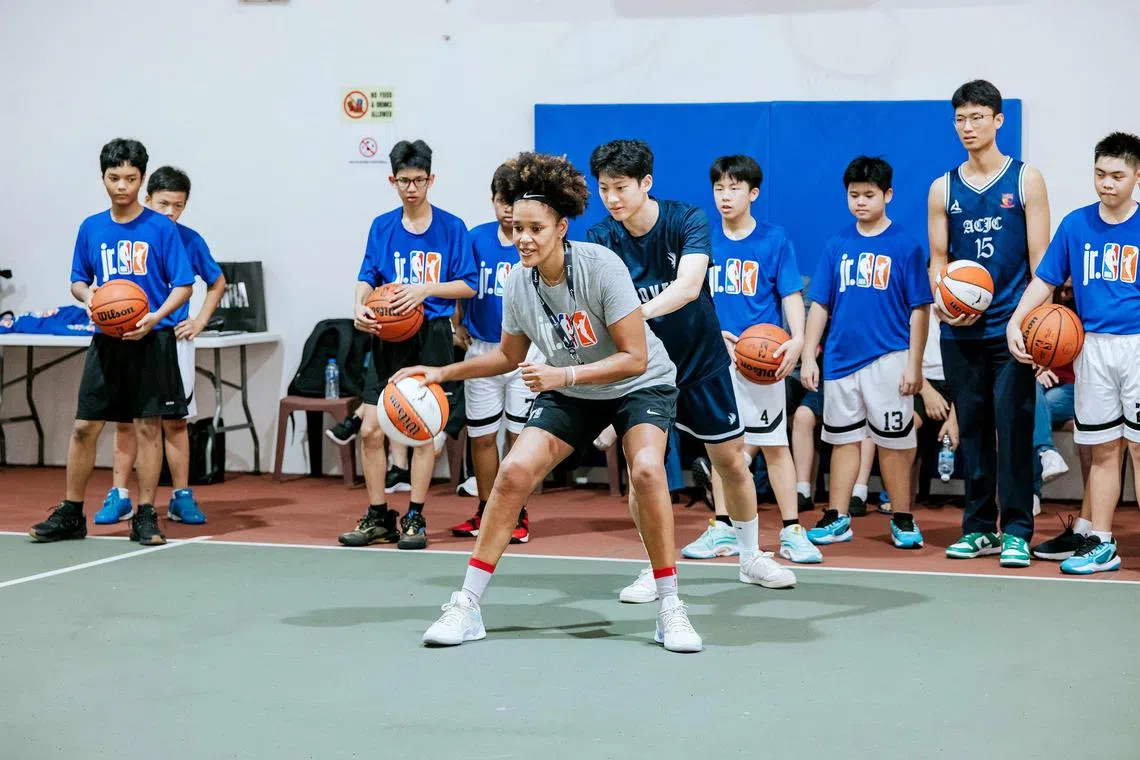 Spectra Secondary School students participated in a basketball clinic conducted by Natalia Andre (centre) from the NBA Asia's basketball operations department.