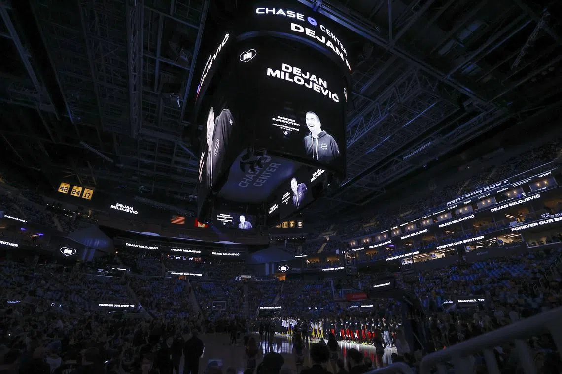 The Golden State Warriors honour their late assistant coach Dejan Milojevic during a ceremony before their game on Jan 24.