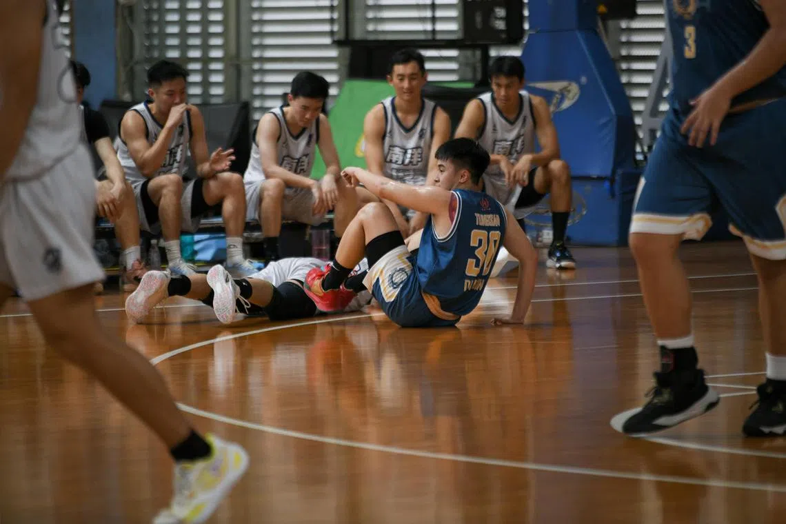 A Tungsan player seen on the ground during a National Basketball League Division One match at the Singapore Basketball Centre on Aug 18. There have been complaints of the court floors being slippery.