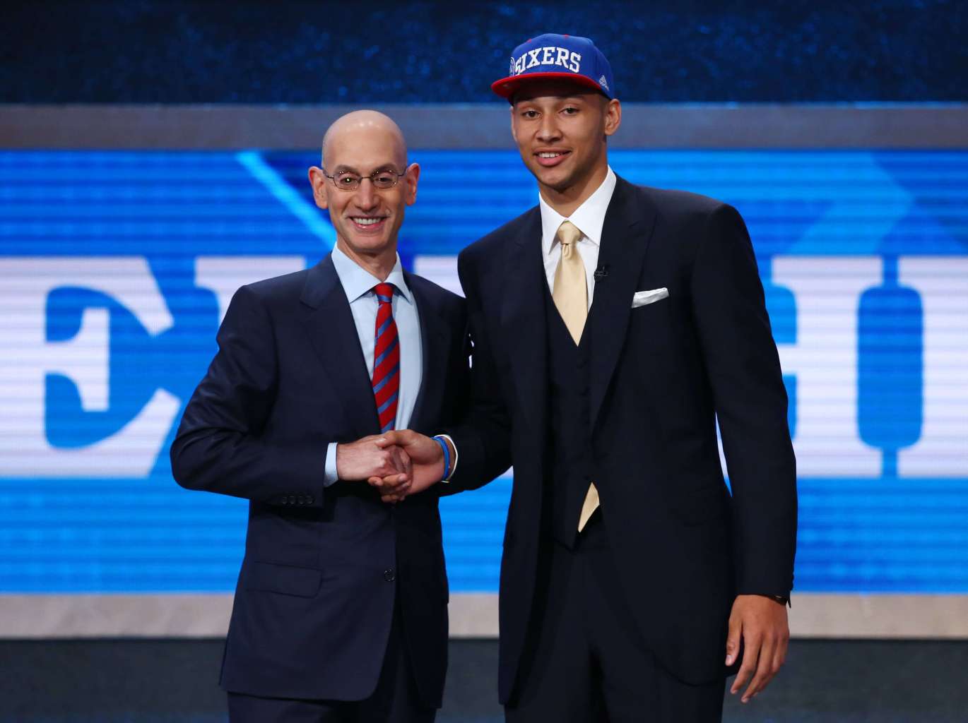 Ben Simmons (right) with NBA commissioner Adam Silver after being selected as the number one overall pick to the Philadelphia 76ers.