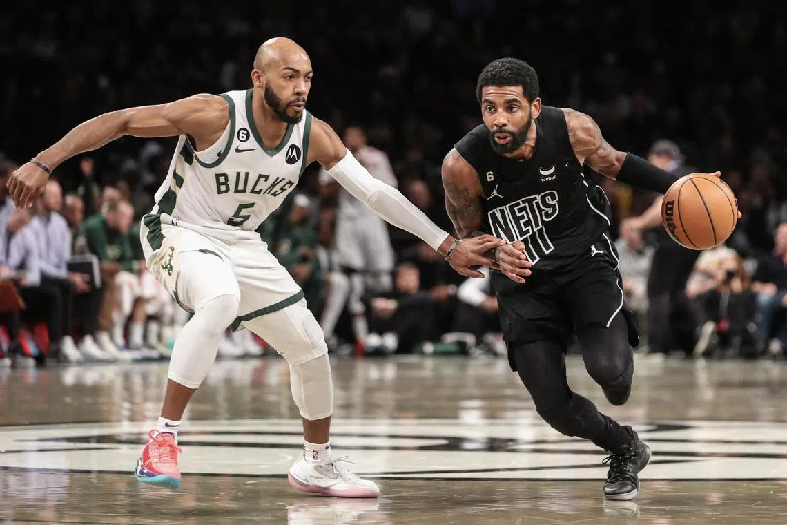 Brooklyn Nets guard Kyrie Irving drives past Milwaukee Bucks guard Jevon Carter in the fourth quarter.