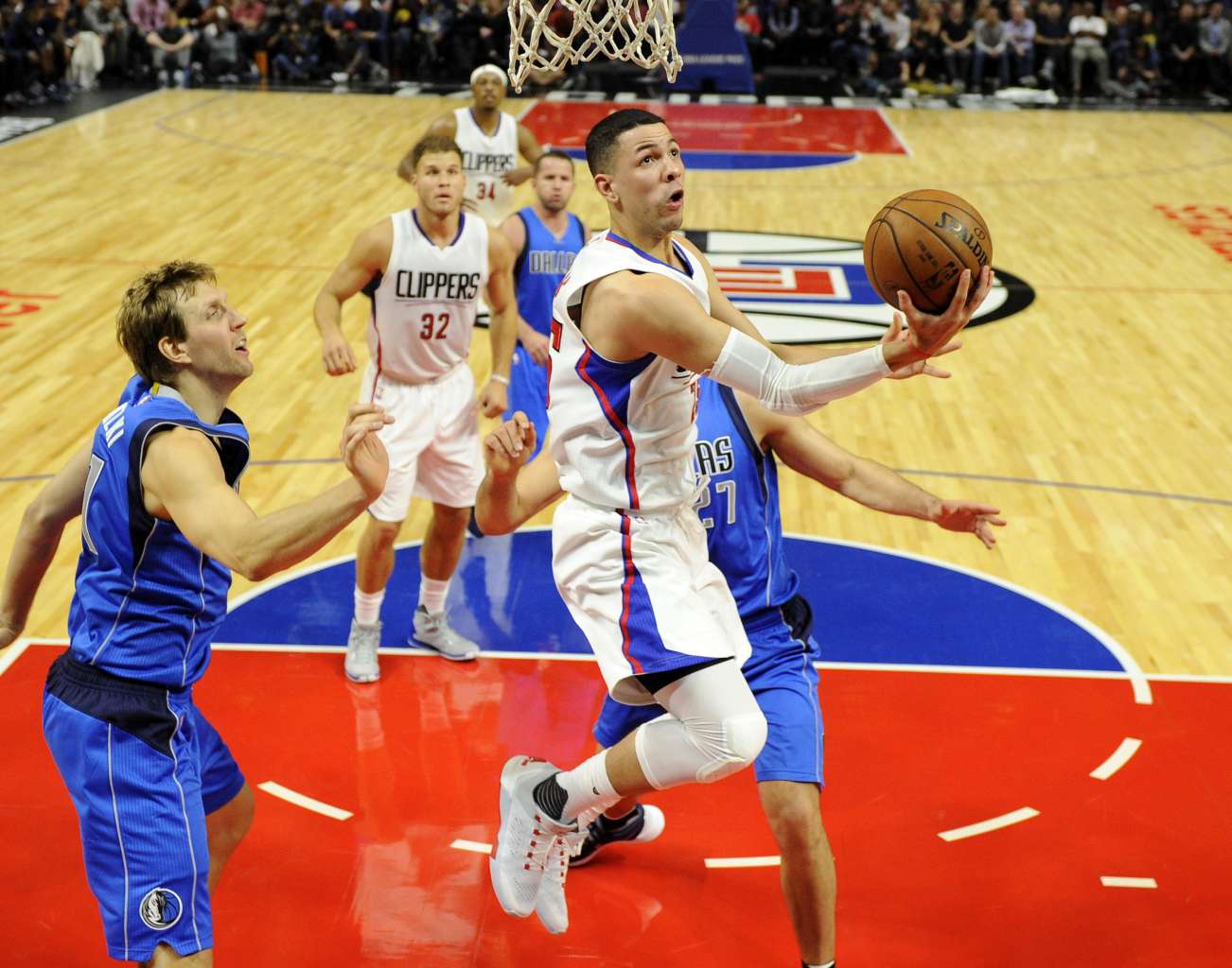 Los Angeles Clippers guard Austin Rivers (Centre), was fined US$25,000 (S$35,000) by the NBA on Thursday for throwing a seat cushion that hit a fan in the face.