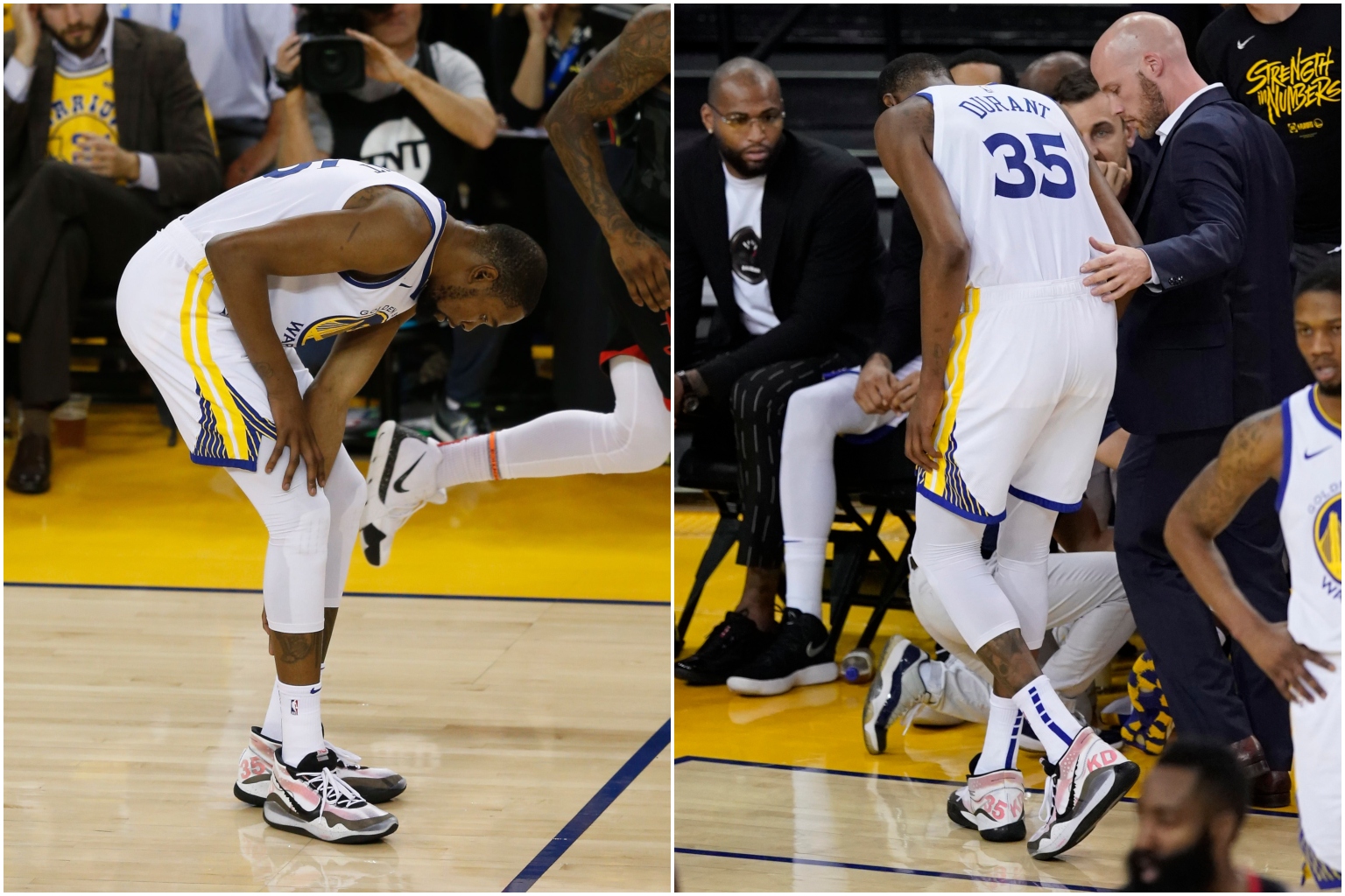 Durant limped off the court with a non-contact right leg injury during the third quarter of his team's Game 5 battle with Houston Rockets.