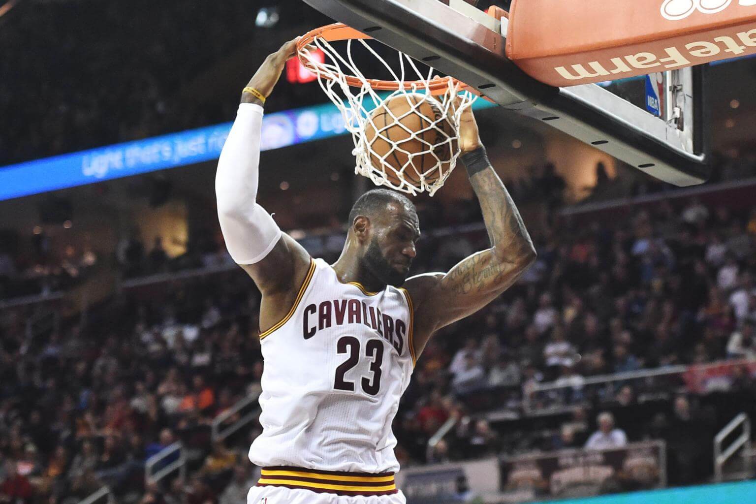 Cleveland Cavaliers forward LeBron James dunking the ball against the Orlando Magic, during their NBA game on April 4, 2017.