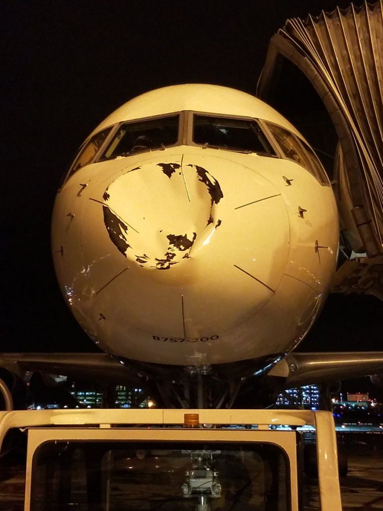 "30,000 feet in the air. Flying to Chicago. What caused this?" Adams wrote above an image of the damaged plane.