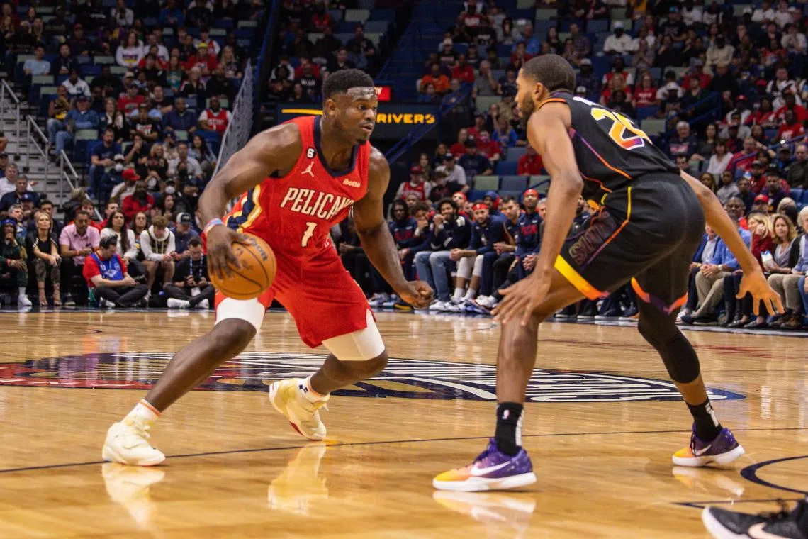 Pelicans forward Zion Williamson (left) scored 35 points, beat Phoenix 128-117.