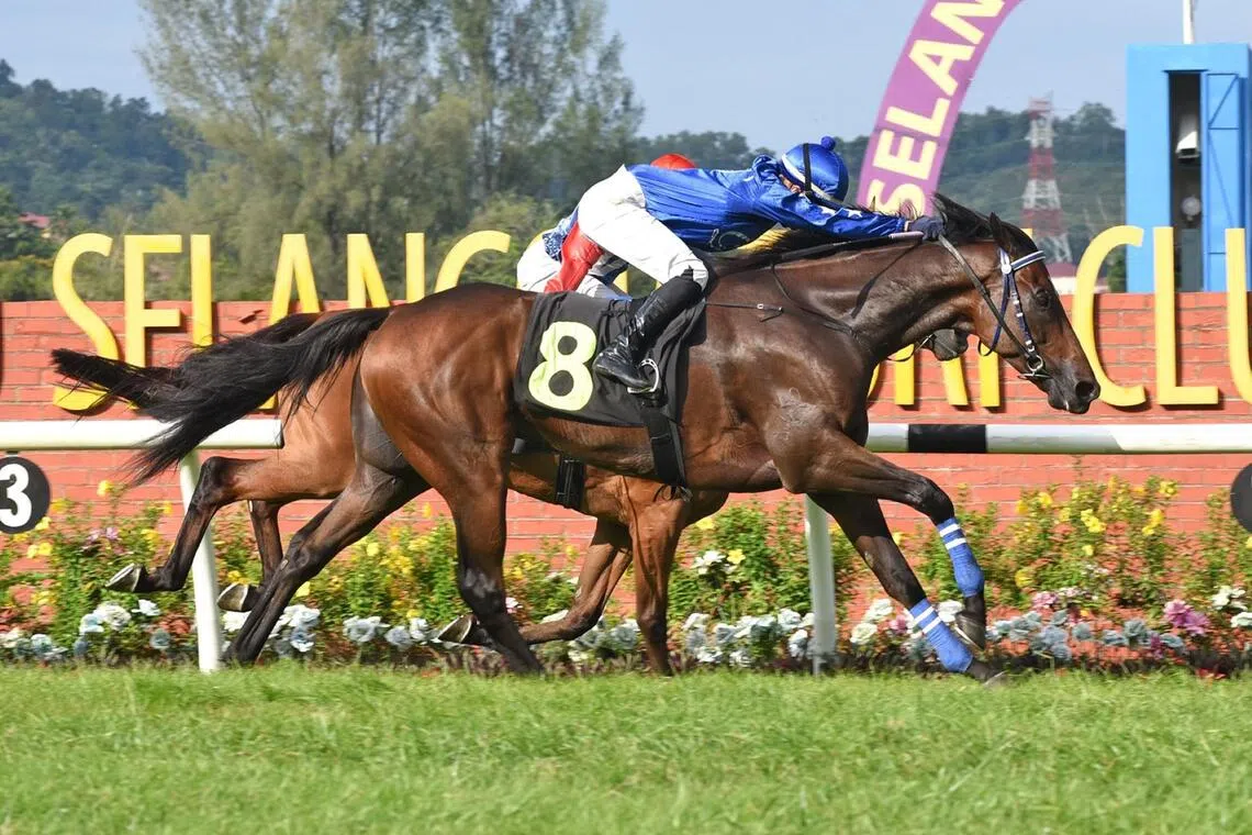 Fortune Wheel (Andre da Silva) getting a neck in front of Shinjuku (Laercio de Souza) in a Class 4A (1,500m) at Sungai Besi on June 29.