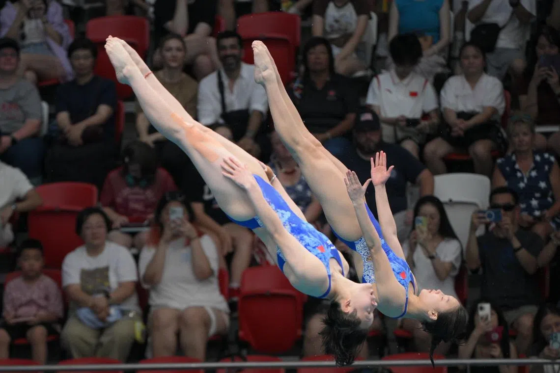 Chen Jia (right) and Chen Yiwen in action during the WAC women’s 3m synchronised diving final.