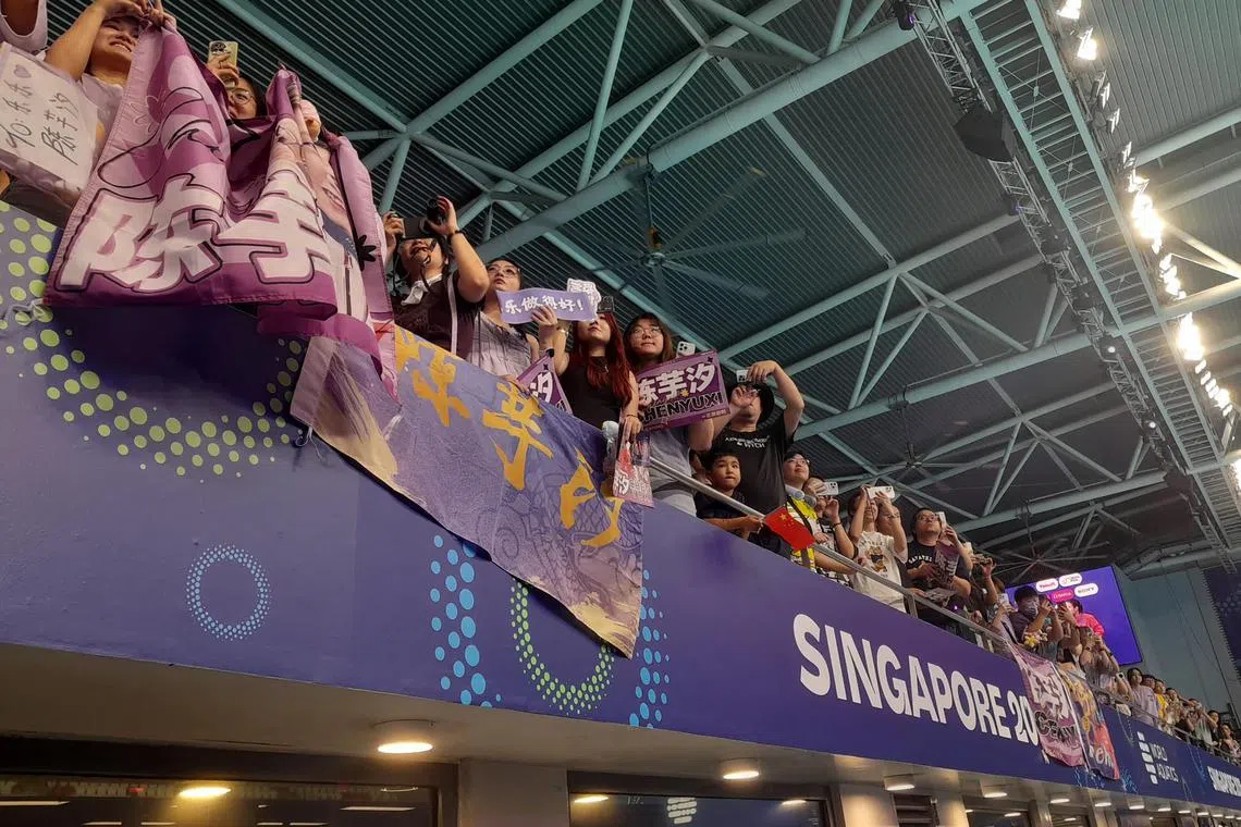 Fans of Chinese diver Chen Yuxi held placards and flags bearing her name.