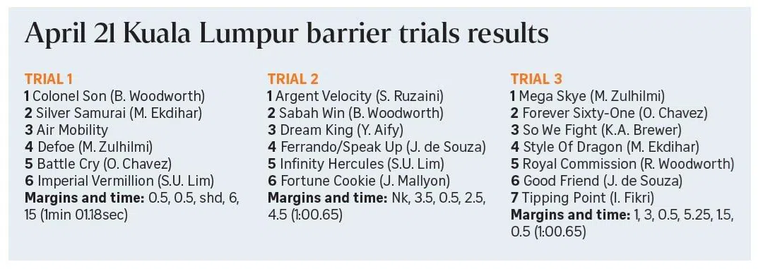 Colonel Son asserts his superiority in gritty win at Sungai Besi barrier trials
