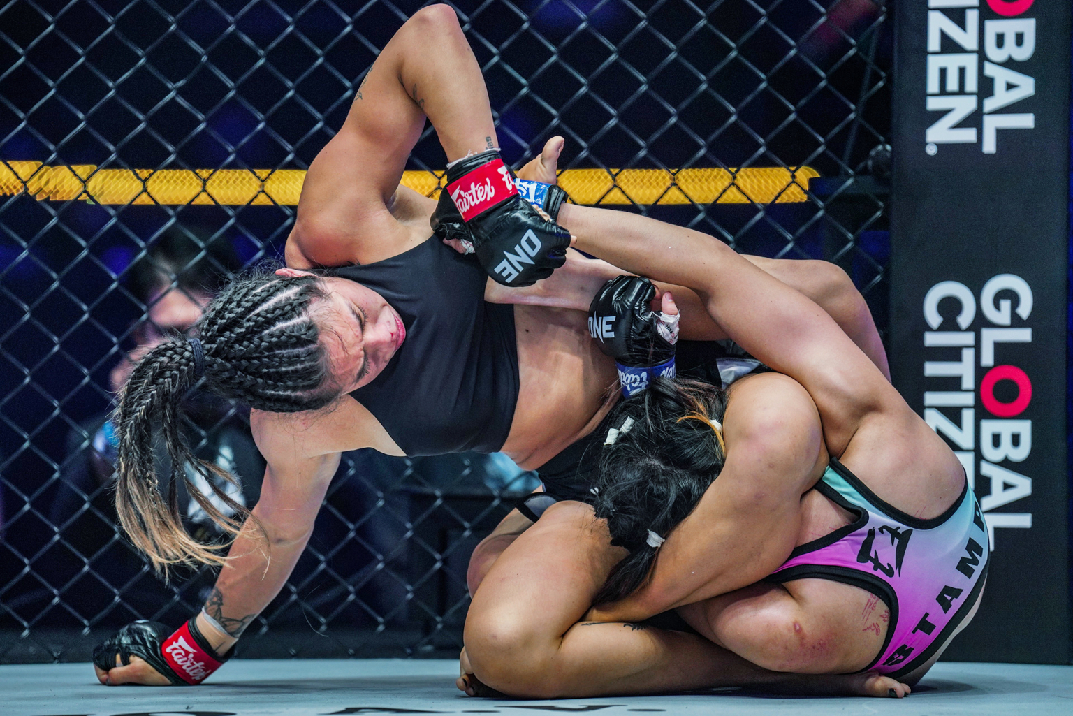 She submitted Stamp Fairtex of Thailand with 10 seconds left in the second round of their five-round bout, which capped One's extravaganza "X" event at the Indoor Stadium on Saturday (March 26).